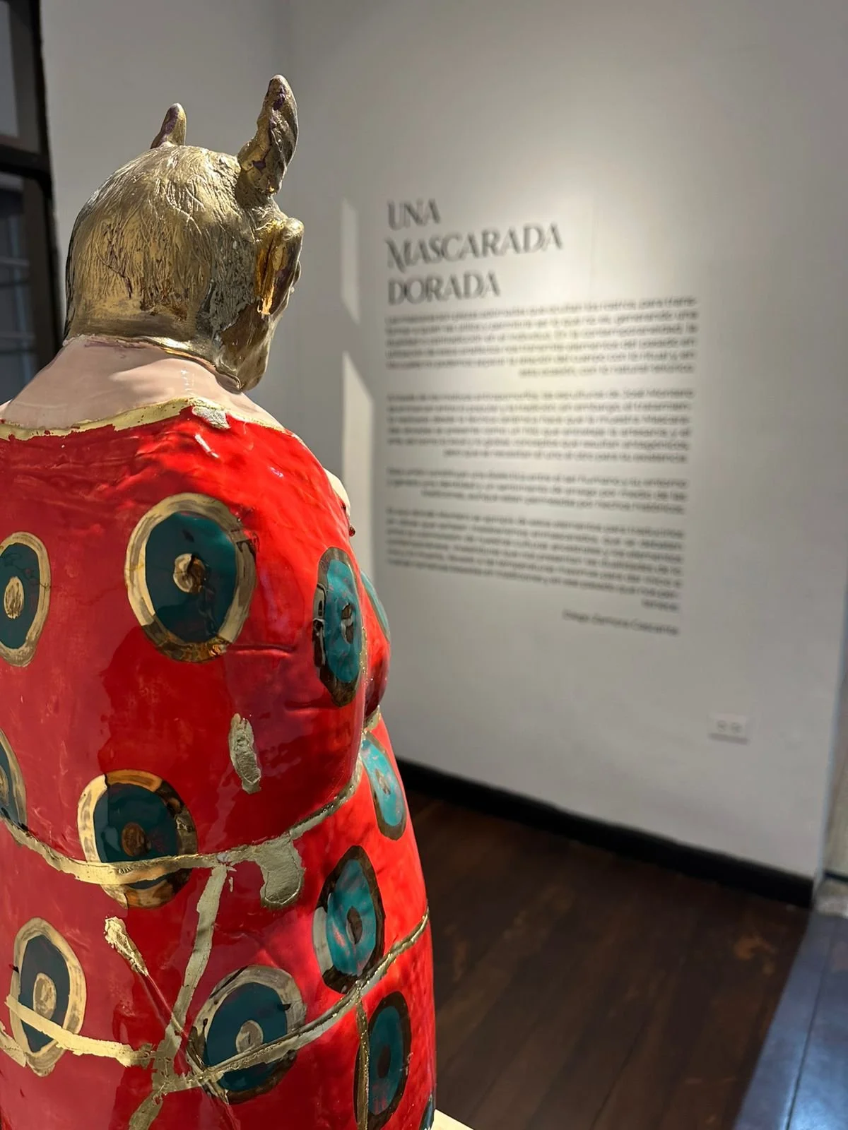 La otra influencia se manifiesta en la Máscara dorada, que toma como referencia la escultura prehispánica para abordar su preocupación por la conservación y la posible extinción de especies. Utilizando el barro, un material con gran valor histórico tanto en la cultura popular como en la prehispánica, y el oro empleado por las antiguas poblaciones para hablar de lo sagrado vinculado a lo animal, Montero profundiza en una reflexión sobre la naturaleza y el ser humano.
