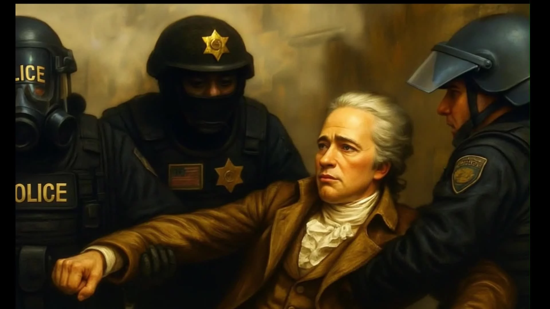 Microvideo animado generado con inteligencia artificial, a partir de escenas reales difundidas por los medios de comunicación sobre la situación de los migrantes. En él se representa a una figura similar a Alexander Hamilton siendo arrestada por fuerzas policiales del ICE, como si se tratara de otro migrante más.